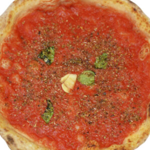 Pomodoro, pomodorini a filetti, olive, acciughe, aglio, origano.